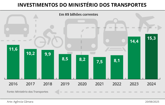 Entre outros temas, Renan Filho abordou os investimentos da pasta. Segundo ele, nos dois últimos anos, as ações do ministério somaram R$ 29,7 bilhões, quase a mesma quantia aplicada pela gestão anterior em quatro anos (R$ 32,3 bilhões).